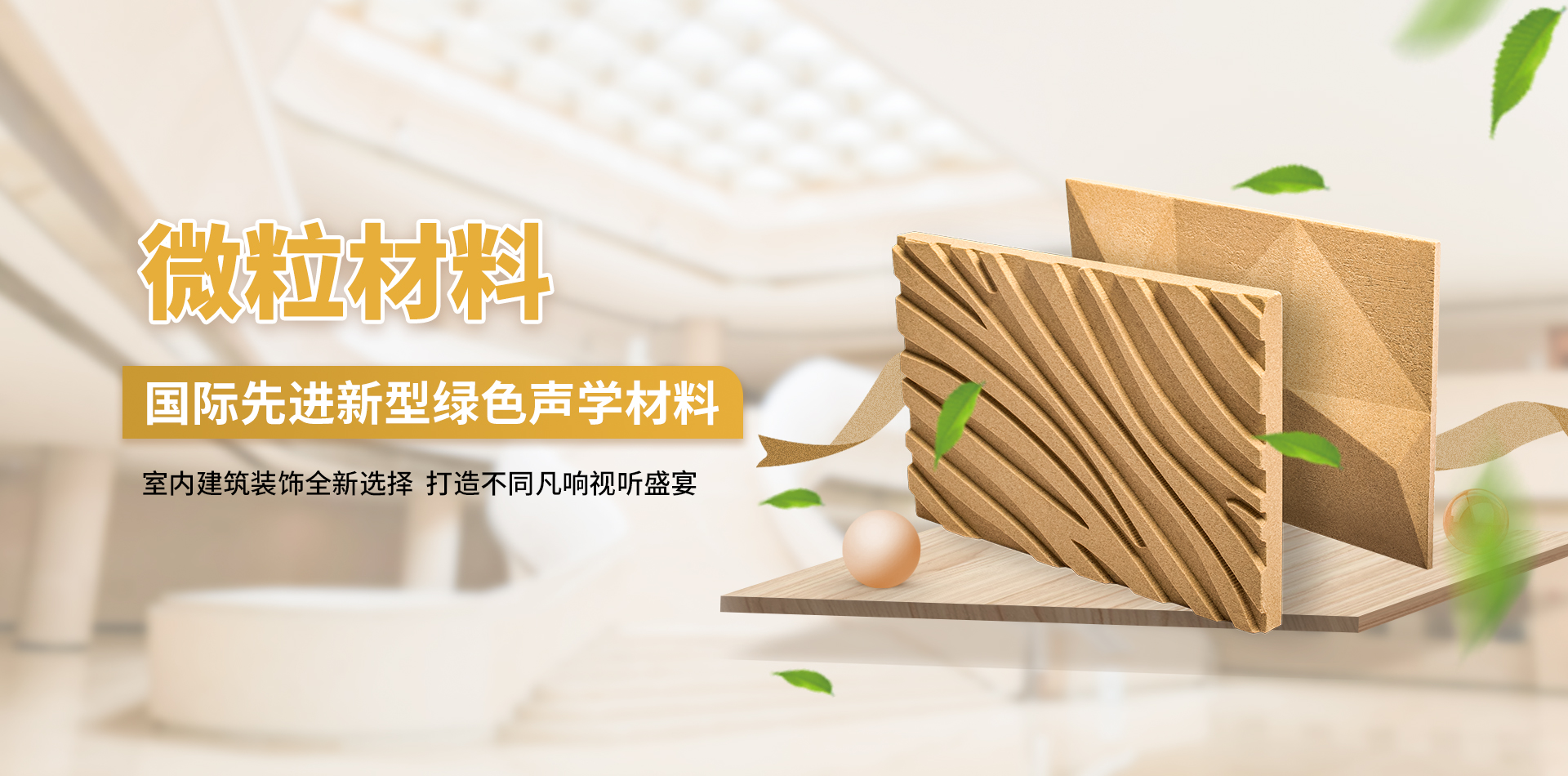微粒材料是一種新型綠色裝飾材料,具備優(yōu)異的聲學性和物理性能。該材料是以天然砂粒或經(jīng)環(huán)保處理的固廢顆粒為骨料,以環(huán)保膠凝劑,通過壓振工藝,生產的具有大量相互連通的微小空隙的多孔材料。